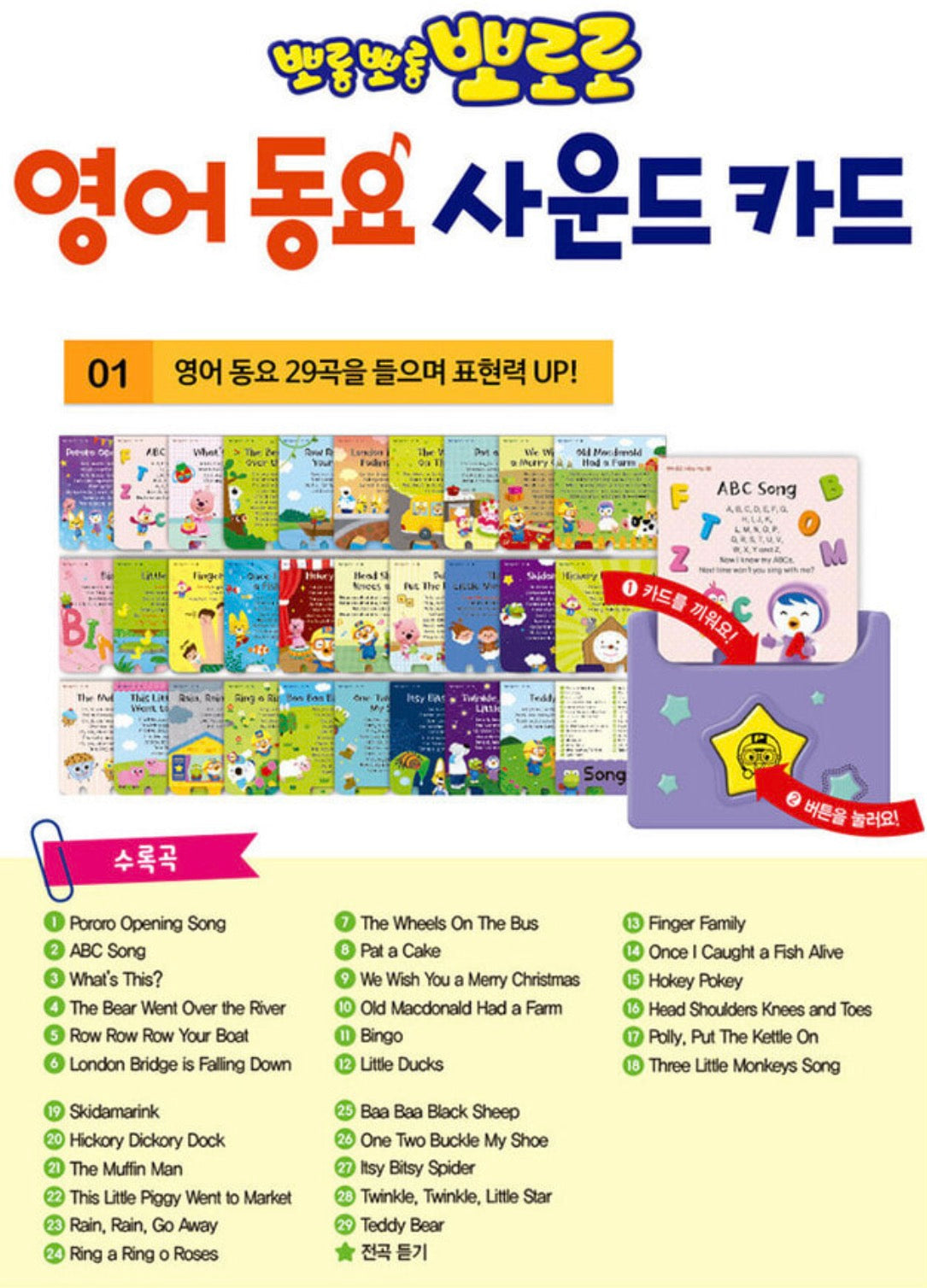 【韓國直送】Pororo英文兒歌讀卡機
